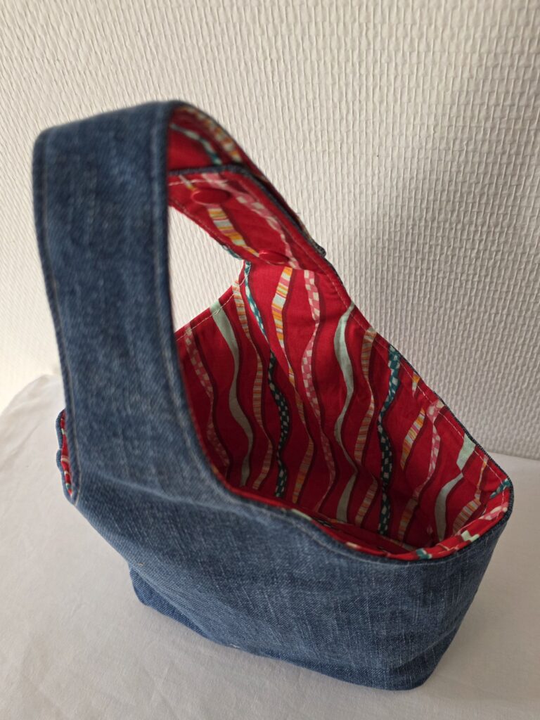» Zigzag » est une panière à pinces à linge artisanale, conçue pour allier praticité, durabilité et bonne humeur. Son extérieur en denim recyclé lui confère robustesse et style, tandis que sa doublure intérieure aux rayures colorées apporte une touche joyeuse et graphique. Sur le devant, une corde brodée accueille une ribambelle de mini-vêtements cousus main — culottes, chaussettes, pantalons — dans le même tissu rayé, suspendus avec des pinces textiles. Un clin d’œil malicieux à la lessive qui danse au vent. bouton-pression rouge sur l’anse .lavable en machine à 30°C. N°673 – 17x25x10 – 25€